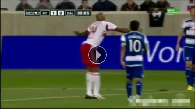 Kariyerine MLS takımlarından New York Red Bulls'ta devam eden Fransız yıldız Thierry Henry, takımının FC Dallas ile oynadığı maçta penaltı kazanınca rakip takım oyuncusunun faulunu ilginç bir yolla taklit etti.