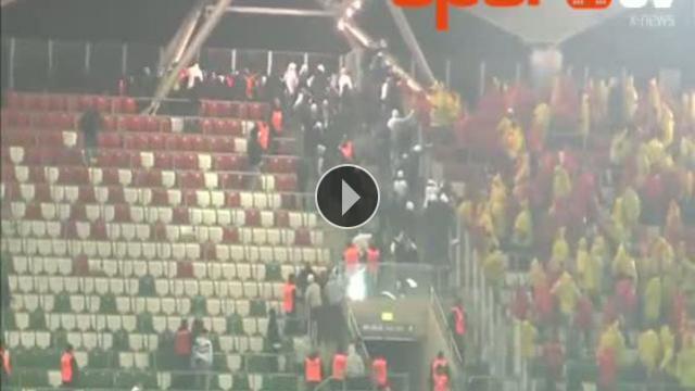 Polonya'nın Legia Warszawa ve Jagiallonia Bialystok taraftarları arasında büyük bir kavga çıktı. Yumruklar havada uçuştu!