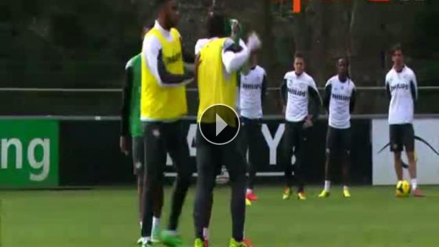 Hollanda Erediviese ekiplerinden PSV Eindhoven'in son antrenmanında Memphis Depay ve Joshua Brenet birbirine girdi.