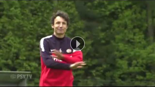 Sezon sonunda futbolu bırakacağını açıklayan Hollandalı oyuncu Mark Van Bommel, PSV Eindhoven antrenmanında 30 metre uzaktaki römorku ilk denemesinde 12'den vurdu.