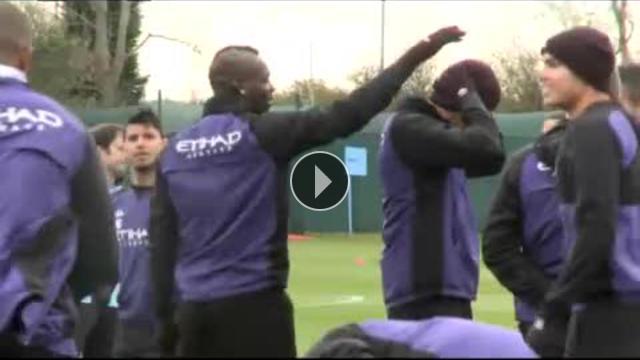 Manchester City antrenmanlarının neşesi Mario Balotelli, soğuk havada antrenmana bere takmadan çıkınca arkadaşlarının berelerine salça oldu.