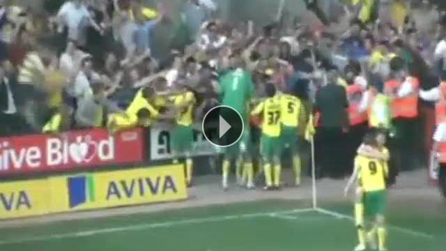 Bir Norwich taraftarı takımının gol sevincini biraz abartınca tribünden düştü. Gol sonrası tribünlerin önüne gelen futbolcuları gören taraftar fazla heyecanlanmış olacakki bir anda kendini yerde buldu.