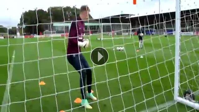 İngiltere Milli Takımı'nın kalecileri Joe Hart, Fraser Forster ve Ben Foster antrenmanlardaki başarılı performanslarıyla dikkat çekiyor.