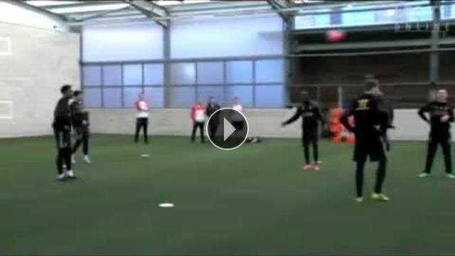 İngiltere Premier Lig ekiplerinden Liverpool'da yıldız futbolcular ayak tenisi ile stres attı.