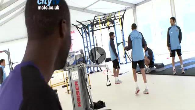 İngiltere Premier Lig'i şampiyon olarak tamamlayan Manchester City'nin futbolcuları neşeli bir şekilde yeni sezona hazırlanıyor.