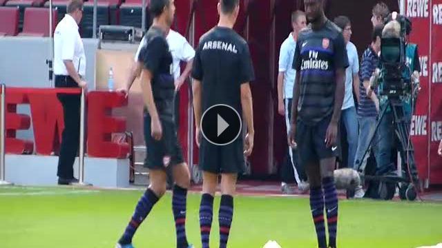 Arsenal'den transferi gündemden düşmeyen Robin van Persie, Köln maçı öncesinde takım arkadaşları Johan Djourou, Marouane Chamakh ve Laurent Koscielny'e yeni bir hareket öğretiyor.