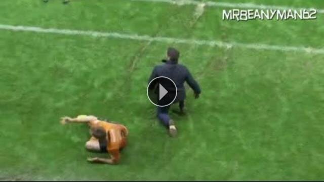 Wolverhampton ile Oldham Athletic arasında oynanan İngiltere 1.Lig maçında Wolverhamptonlı James Henry kaygan zeminde duramayınca rakip takım teknik direktörünü düşürdü.