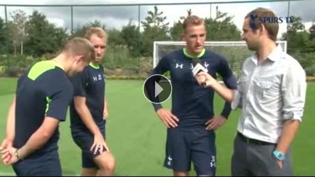 Tottenham'ın genç yıldız oyuncuları Christian Eriksen, Lewis Holtby ve Harry Kane İngilizler'in meşhur crossbar challenge olarak adlandırılan direk vurma yarışmasında kozlarını paylaştılar.