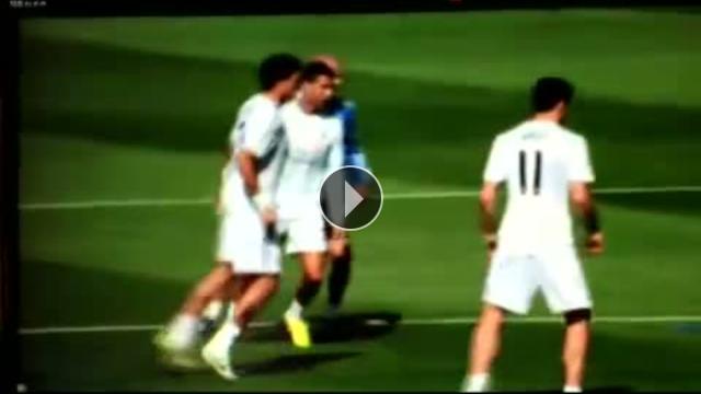 Real Madrid rekor transferi Gareth Bale, top kapma çalışması sırasında takım arkadaşı Cristiano Ronaldo'ya zor anlar yaşattı.