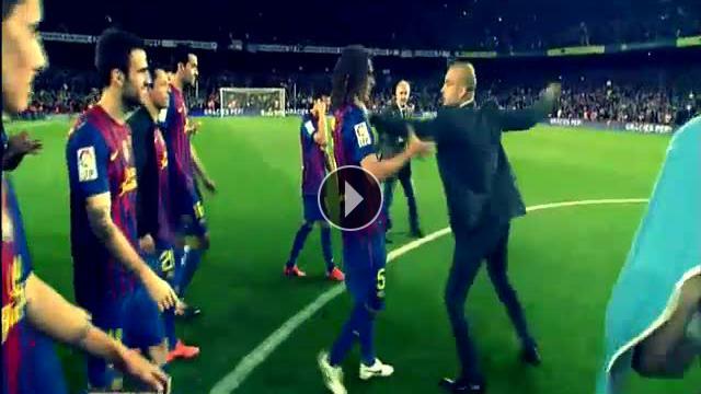 Pep Guardiola, Barcelona'dan ayrılacağını açıklamasının ardından, son kez teknik direktör olarak Nou Camp'a çıktı. Veda öncesinde ise Puyol ile şakalaşan Guardiola büyük alkışlarla veda etti.