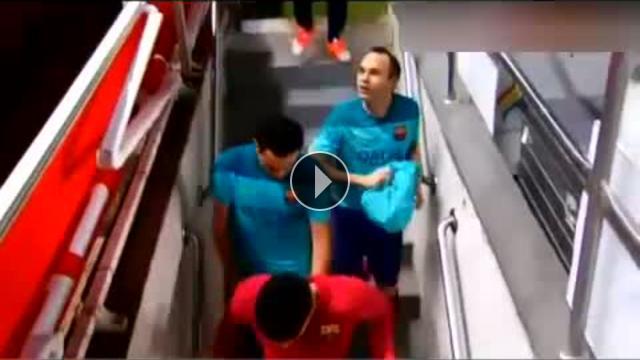 Barcelona'nın yıldız futbolcusu Andres Iniesta, formasını taraftarlara atınca formayı kapan bayan taraftar sevinçten çılgına döndü...