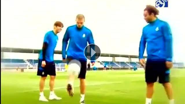 Real Madrid antrenmanında el ele veren iki Brezilyalı Marcelo ve Kaka, Portekizli savunma oyuncusu Pepe'ye hepimizin küçükken bir şekilde maruz kaldığı o şakayı yaptı.