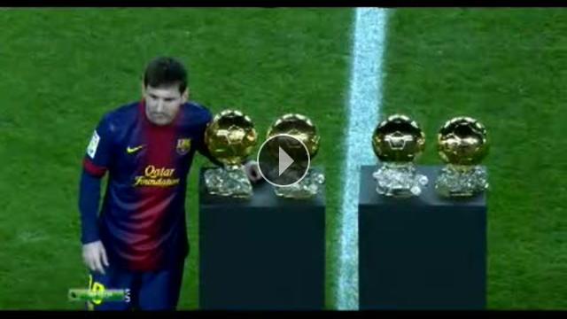 4. kez art arda FIFA Ballon d'Or ödülünün sahibi olan Arjantinli süper yıldız Lionel Messi, Barcelona'nın Malaga ile oynadığı maç öncesi Nou Camp'ta taraftarlarına ödülünü sundu.