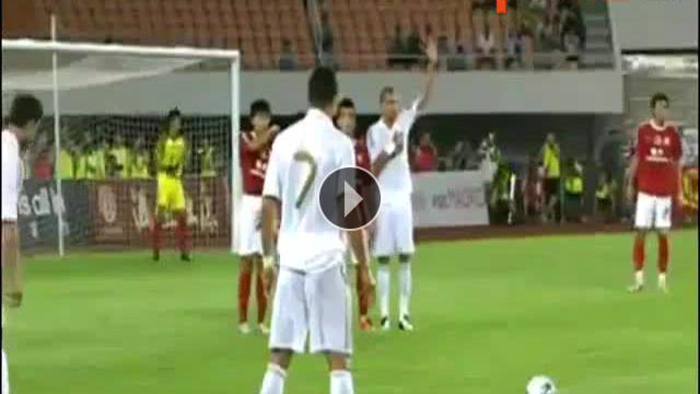 Yeni sezon hazırlıklarını Çin'de sürdüren Real Madrid hazırlık maçlarında şov yapmaya devam ediyor. Tabi ara sıra aksiliklerde yaşanmıyor değil. Örneğin Cristiano Ronaldo. Frikikleri meşhur Ronaldo'dan kendisine yakışmayacak bir frikik.