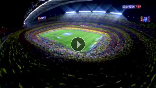 Barcelona'nın Nou Camp'ta Real Madrid'i ağırladığı maç öncesinde tribünleri dolduran 98 bin kişi sarı ve kırmızı kartonlardan Katalan bayrağı oluşturdu.