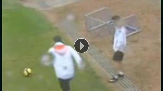 La Liga ekiplerinden Valencia'nın yıldız golcüsü David Villa antreman sırasında aut çizgisi gerisinden inanılması güç bir gole imza attı.