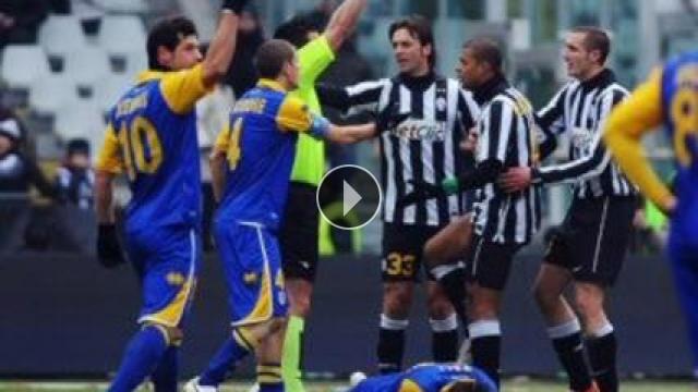 İtalya Serie A'nın 18. haftasında Juventus Torino Olimpiyat Stadı'nda Parma'ya 4-1 yenildi. Maçın gollerini Parma'dan 41 ve 48. dakikalarda Giovinco, 62. dakikada penaltıdan Crespo ve 90. dakikada Palladino atarken, Juventus'un tek sayısını 60. dakikada Legrottaglie kaydetti. Felipe Melo yaptığı bu sert hareket ile maça damgasını vurdu izleyin...