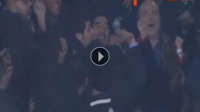 İtalya Kupası Yarı Final maçında Napoli ile Roma karşı karşıya gelirken Napolili Gonzalo Higuain'in attığı gol Maradona'yı böyle sevindirdi.