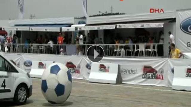 Krampon yerine Ford Transit Courier ve Tourneo Courier araçları kullanıldı ve 1.2 metre çapındaki dev futbol topunu filelerle buluşturmak için sürücüler hünerlerini gösterdiler.