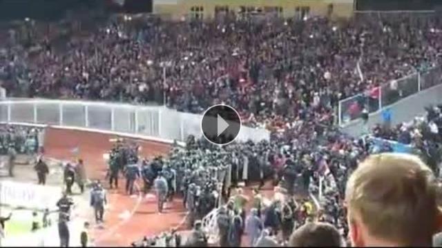 Spartak Moskova ile Shinnik arasında oynanan Rusya Kupası maçında Svastika bayrakları ile olay çıkaran taraftarlara polis tazyikli suyla müdahale etti.