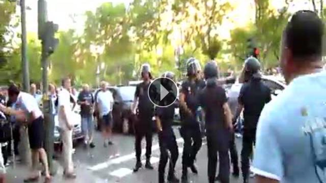 Şampiyonlar Ligi'nde Real Madrid'e konuk olan Manchester City'de taraftarlar maç öncesinde Madrid sokaklarında polis ile tartıştı. Uyarıları dinlemeyen İngiliz taraftarlar polisin sert tepkisine maruz kaldı.