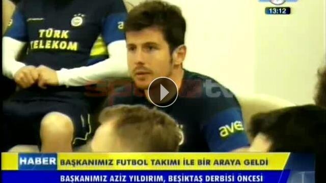 Fenerbahçe Kaptanı Emre Belözoğlu, başkan Aziz Yıldırım'ın takımla birlikte yaptığı konuşmada söz alırken duygusal anlar yaşandı.