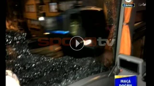 Fenerbahçe'nin Trabzon Avni Aker Stadyumu'na girerken taşlı saldırıya maruz kalmasının ardından takım otobüsünün camları kırıldı...