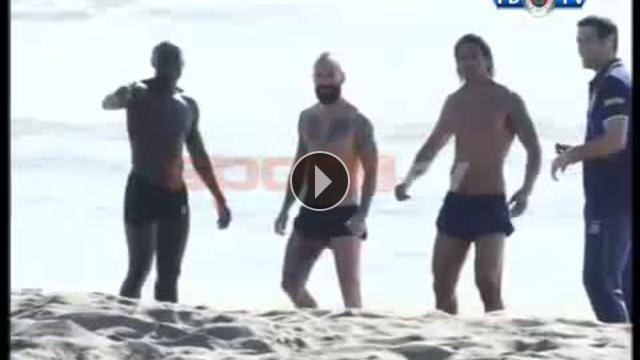 Fenerbahçeli futbolcular Antalya'daki güzel havayı denize girerek değerlendirdi...