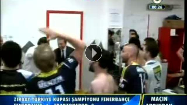 Fenerbahçeli futbolcular kazanılan kupanın ardından soyunma odasında büyük sevinç yaşadı.