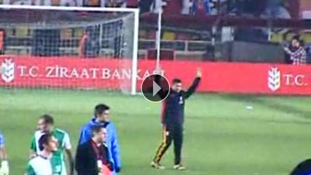 Galatasaray'ın başarılı futbolcularından Sabri Sarıoğlu, sarı-kırmızılı takımın Türkiye Kupası'nda Beypazarı Şekerspor ile oynadığı son maçta taraftarlarla üçlü çektirdi.
