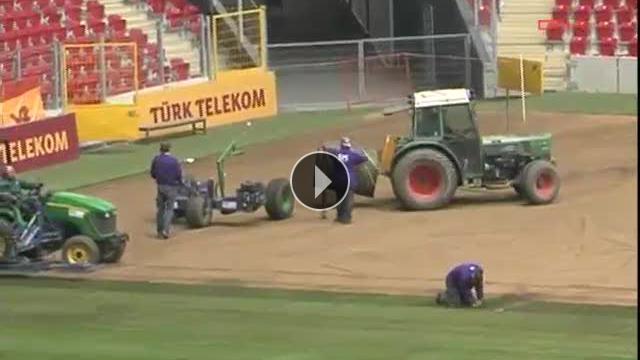 Yoğun organizasyonlar ve maç programı nedeniyle yıpranan Ali Sami Yen Spor Kompleksi Türk Telekom Arena'daki çimlerin değişimi tüm hızıyla sürüyor.