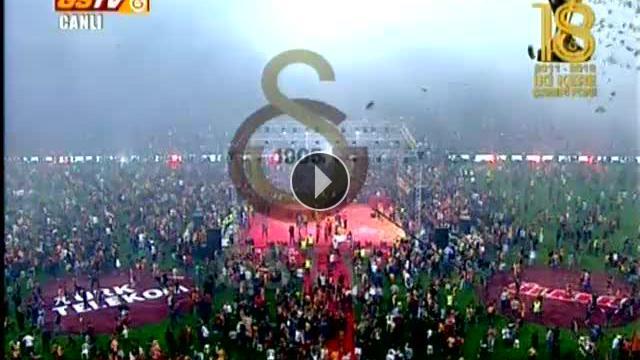 Türk Telekom Arena'da şampiyonluk kutlamaları taraftarın sahaya girmesi ile bir süre durdu. Sahanın uzun uğraşlar sonunda boşaltılmasının ardından tören kaldığı yerden devam etti.