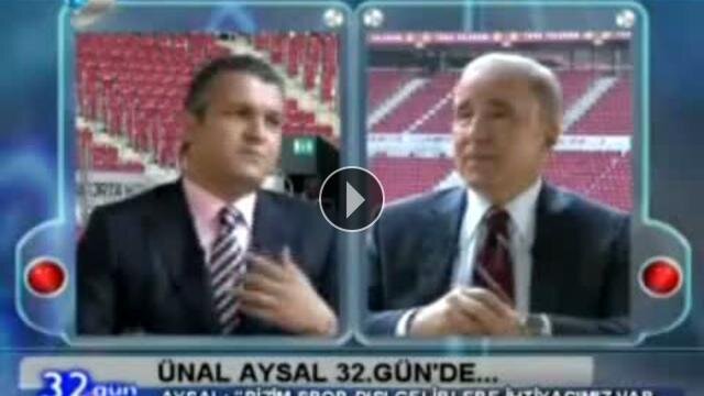 Galatasaray Spor Kulübü Başkanı Ünal Aysal, Kanal D'de yayınlanan 32. Gün adlı programa katılarak önemli açıklamalarda bulundu. Ünal Aysal, 2 yıldır takımlarına büyük destek gösteren Galatasaray taraftarına teşekkür etti.