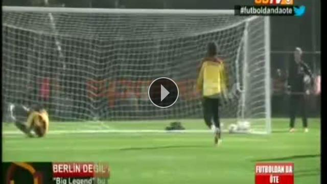Galatasaray'ın süperstarı Didier Drogba, Antalya kampında kaleye geçti ve birbirinden şık kurtarışlar yaptı...