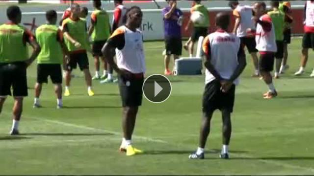 Galatasaray antrenmanında Fildişi Sahilli golcü Didier Drogba'nın performansı, teknik direktör Fatih Terim'in ise neşesi dikkat çekti.