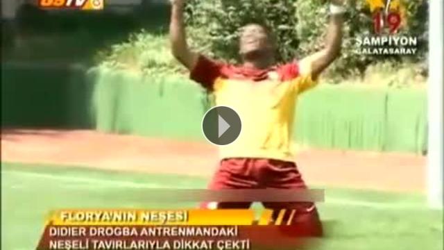 Galatasaray'ın Fildişili yıldızı Didier Drogba, Florya'daki antrenmanda neşeli tavırları ve açıklamalarıyla ilgi odağı oldu.