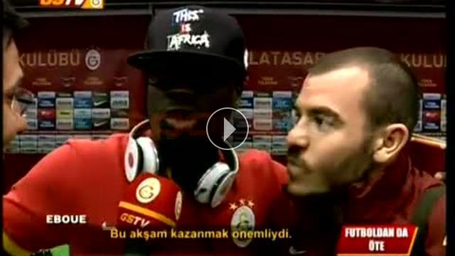 Galatasaray'ın Sanica Boru Elazığspor galibiyetinin ardından Yekta Kurtuluş ve Emmanuel Eboue GS TV mikrofonlarına konuşurken renkli görüntüler ortaya çıktı.