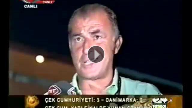 Galatasaray Teknik Direktörü Fatih Terim, EURO 2004 Çeyrek Finali'nde Çek Cumhuriyeti'nin Danimarka'yı 3-0 yendiği maçın ardından hafif bir canlı yayın kazası geçiren TRT spikerlerine yardım ederken ilginç dakikalarda yaşandı.
