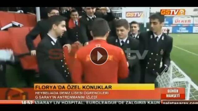 Galatasaray'ın bugünkü idmanında özel konukları vardı. Deniz Lisesi öğrencileri futbolcularla ve Mancini'yle tanışıp fotoğraf çektirdiler. Ayrıca öğrenciler Mancini'ye amiral şapkası hediye etti...