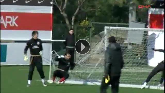 Kaleci Antrenörü Claudio Taffarel yönetiminde çalışan Muslera, Aykut ve Ufuk kale direğine lastikle bağlayarak yaptıkları çalışma sırasında kale direği devrildi. Şans eseri hiç bir oyuncuya çarpmayan kale direği daha sonra iyi şekilde yere sabitlendi ve çalışmaya devam edildi.