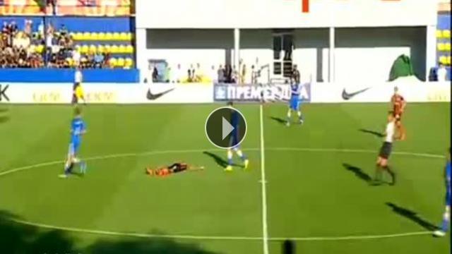 Ukrayna Premier Ligi'nde oynanan Shakhtar Donetsk-FC Illychivets maçında konuk ekip forması giyen Oleksandr Chizhov'un Luiz Adriano'ya yaptığı bu hareket sadece sarı kartla cezalandırıldı...