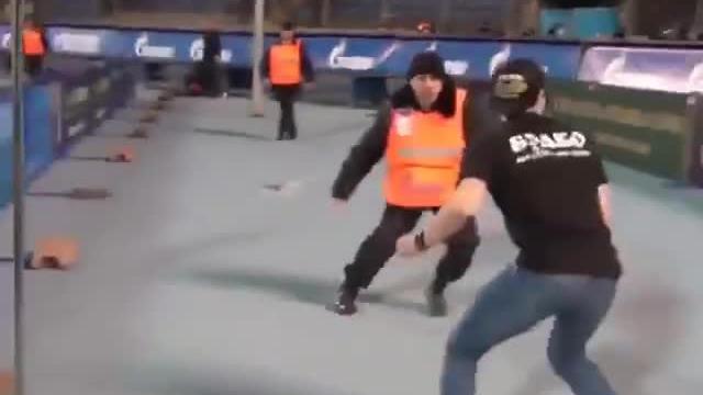 Sahaya girmek için tribünlerden atladı ama... Stattaki güvenlik görevlilerini görünce öyle bir şey yaptı ki facebook izlenme rekoruna koşuyor.