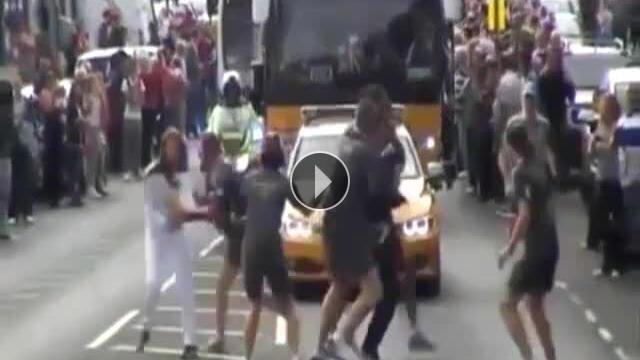 Londra Olimpiyat Oyunları öncesinde şehir turunu sürdüren olimpiyat meşalesi Londra'da saldırıya uğradı.