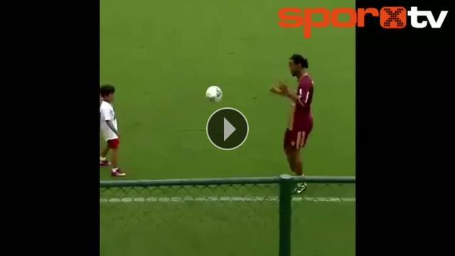 Ronaldinho ve minik hayranından futbol şov!...