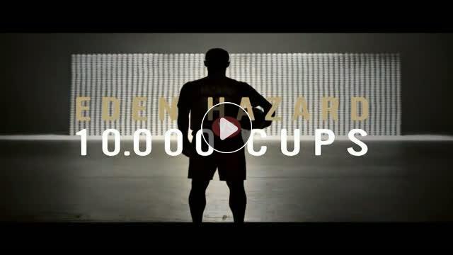 Bir kahve reklamında rol alan Eden Hazard tam on bin kahve fincanının arasından futbol topunu geçirmeye çalıştı.