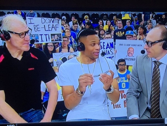 Eski Bruins (UCLA) yıldızı Russell Westbrook, üniversite takımını desteklemek için geçtiğimiz gün Pauley Pavilion'daydı.