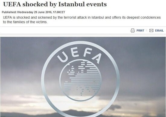 UEFA, İstanbul Atatürk Havalimanı'nda meydana gelen terör saldırısında yaşamını yitirenlerin aileleri için başsağlığı mesajı yayımladı.