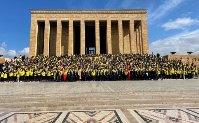 Üzerlerinde, "Bütün ümidim gençliktedir" ve "Atam izindeyiz" yazılı sarı-lacivert mont ve yelek giyen gruptakiler, daha sonra Anıtkabir merdivenlerinde hatıra fotoğrafı çektirdi.Haber; AA, Fotoğraf; AA
