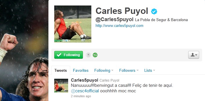 Öte yandan Barcelonalı futbolculardan Carles Puyol ve Gerard Pique resmi twitter hesapları üzerinden yeni takım arkadaşlarını kutlayan mesajlar attı.