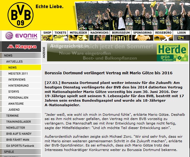 Almanya Bundesliga'da Borussia Dortmund forması giyen Mario Götze, takımı ile sözleşmesini 2016 yılına kadar uzatarak kendisini transfer etmek isteyen kulüplere şok yaşattı!